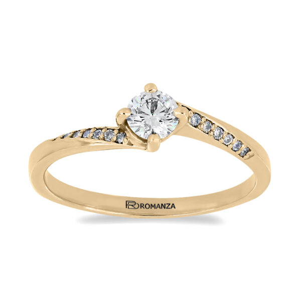 Anillo Solitario con Centro 0.17 Quilates y Montadura 0.12 Quilates de Diamante en Oro Amarillo de 14 kt