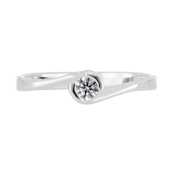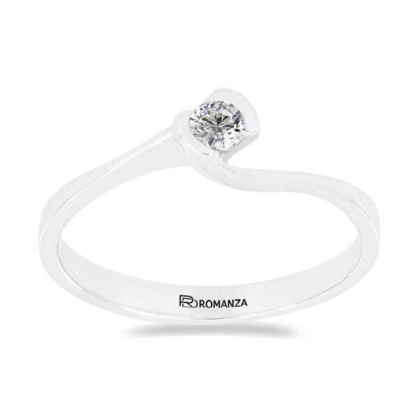 Anillo Solitario con Centro 0.10 Quilates de Diamante en Oro Blanco de 14 kt