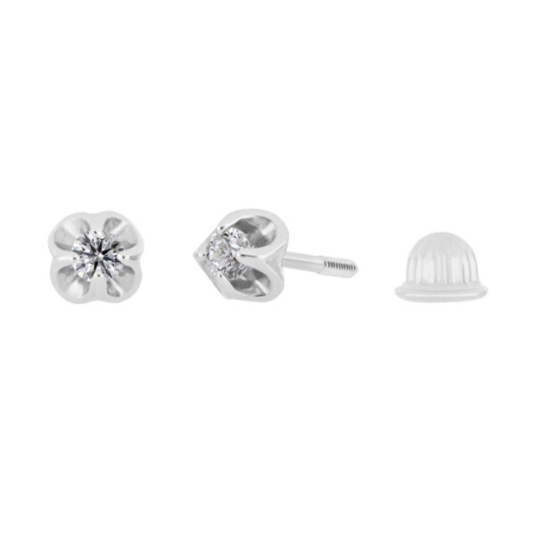 Aretes Bebé o Niña con Montadura 0.03 Quilates de Diamante en ORO BLANCO de 14 kt