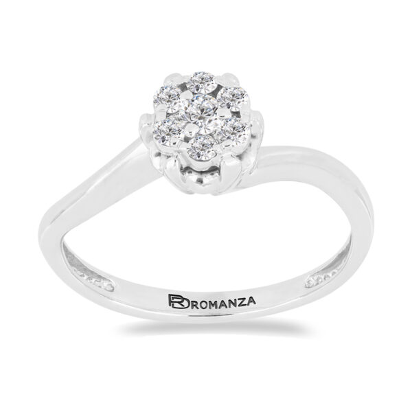 Anillo Solitario Roseta con Montadura 0.20 Quilates de Diamante en Oro Blanco de 14 kt