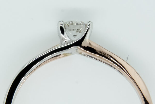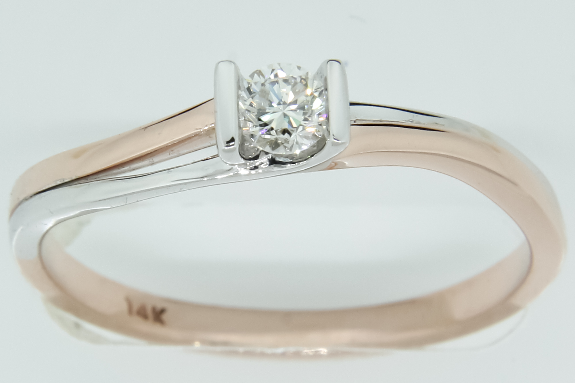 Anillo Solitario con Centro 0.15 Quilates de Diamante en Oro Combinado de 14 kt