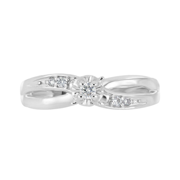 Anillo Solitario Ilusión con Montadura 0.10 Quilates de Diamante en Oro Blanco de 14 kt