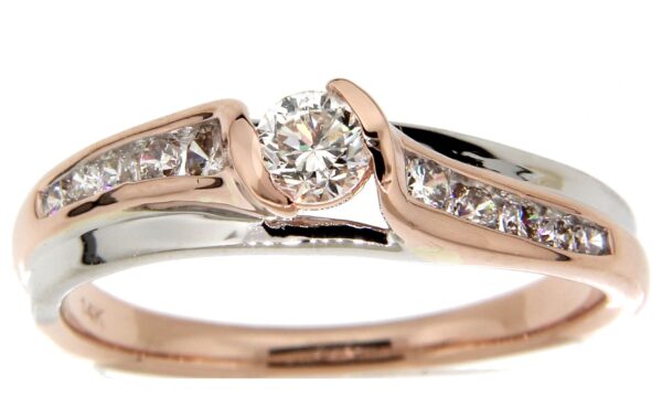 Anillo Solitario con Centro 0.25 Quilates y Montadura 0.26 Quilates de Diamante en Oro Combinado de 14 kt