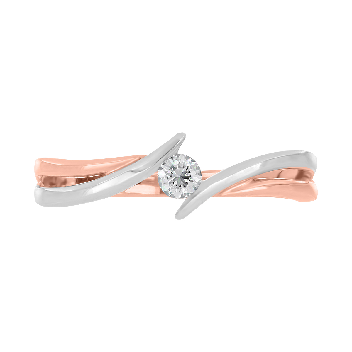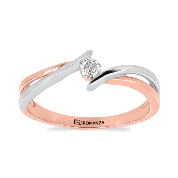 Anillo Solitario con Centro 0.12 Quilates de Diamante en Oro Combinado de 14 kt