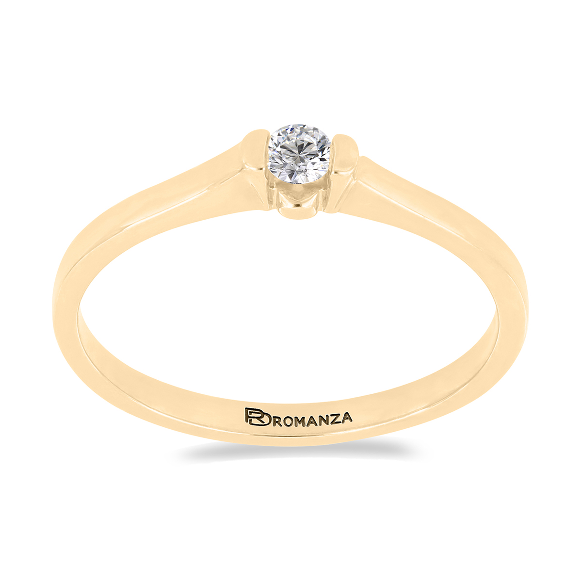 Anillo Solitario con Centro 0.08 Quilates de Diamante en Oro Amarillo de 14 kt