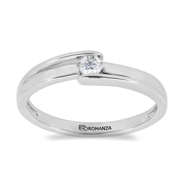 Anillo Solitario con Centro 0.10 Quilates de Diamante en Oro Blanco de 14 kt