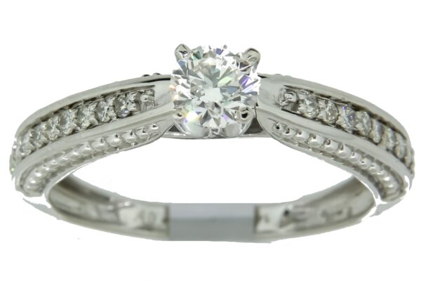 Anillo Solitario con Centro 0.40 Quilates y Montadura 0.20 Quilates de Diamante en Oro Blanco de 14 kt