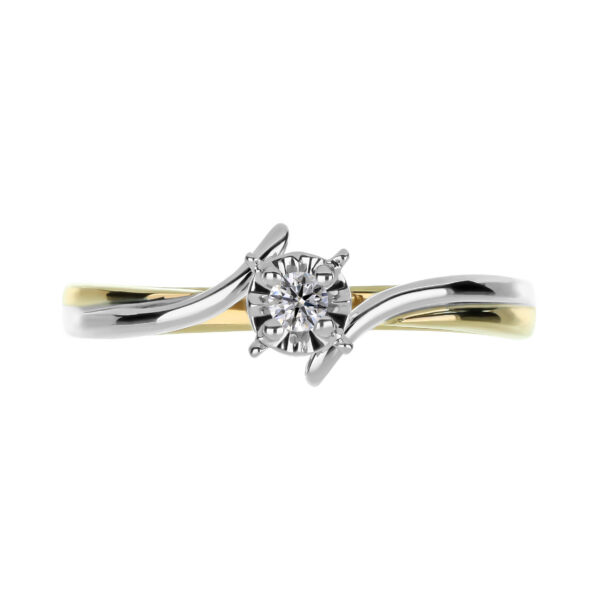 Anillo Solitario Ilusión con Centro 0.06 Quilates de Diamante en Oro Combinado de 14 kt
