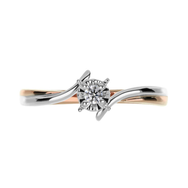 Anillo Solitario Ilusión con Centro 0.06 Quilates de Diamante en Oro Combinado de 14 kt