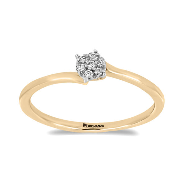 Anillo Solitario Roseta con Montadura 0.06 Quilates de Diamante en Oro Amarillo de 14 kt