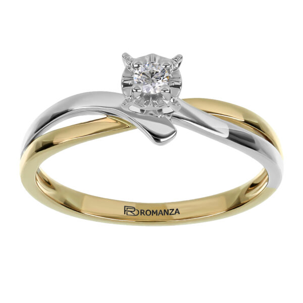 Anillo Solitario Ilusión con Centro 0.06 Quilates de Diamante en Oro Amarillo de 14 kt