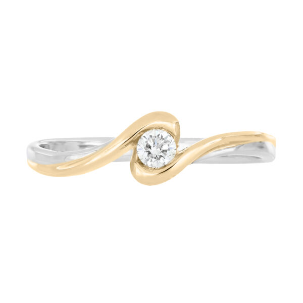 Anillo Solitario con Centro 0.10 Quilates de Diamante en Oro Combinado de 14 kt