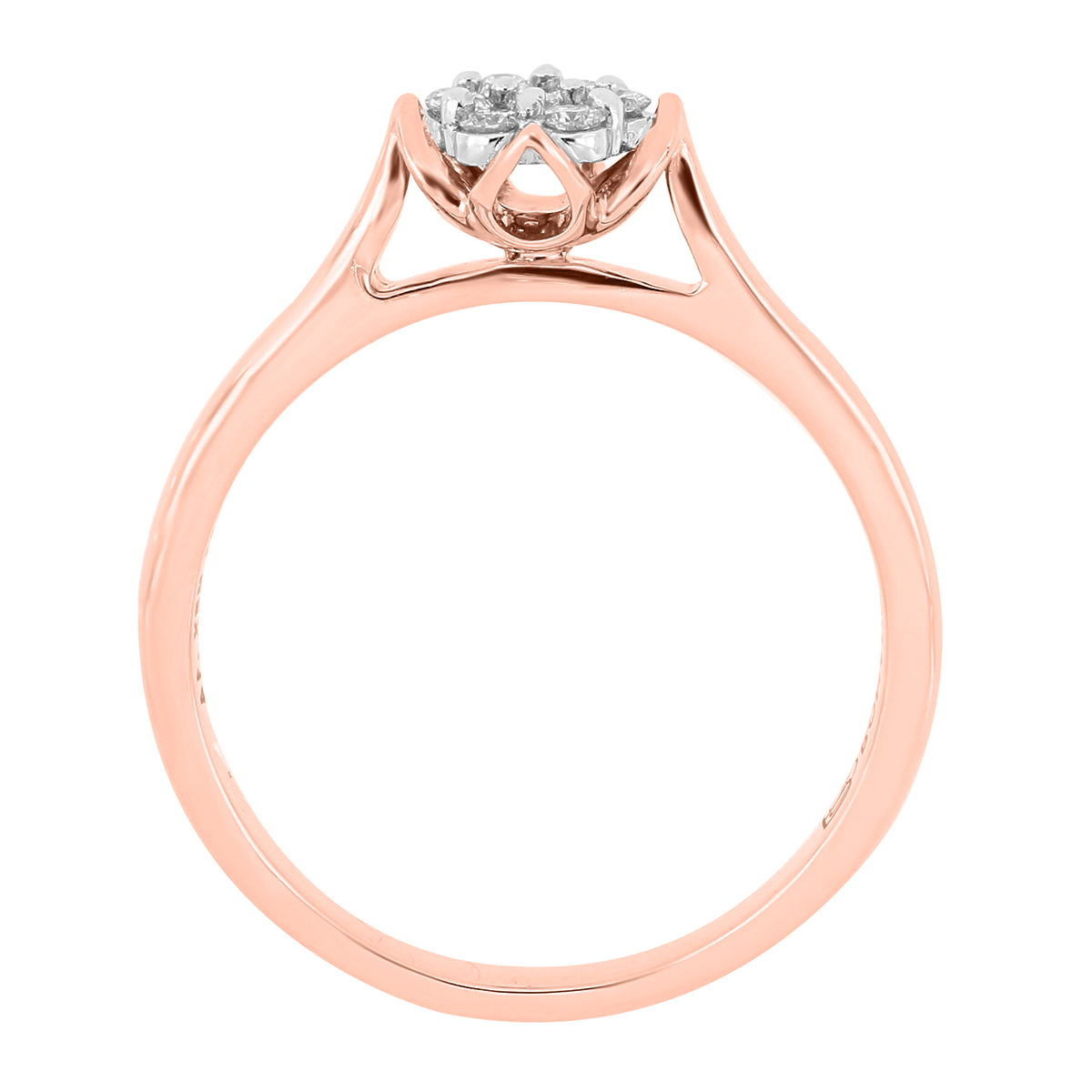 Anillo Solitario Roseta con Montadura 0.14 Quilates de Diamante en Oro Rosa de 14 kt