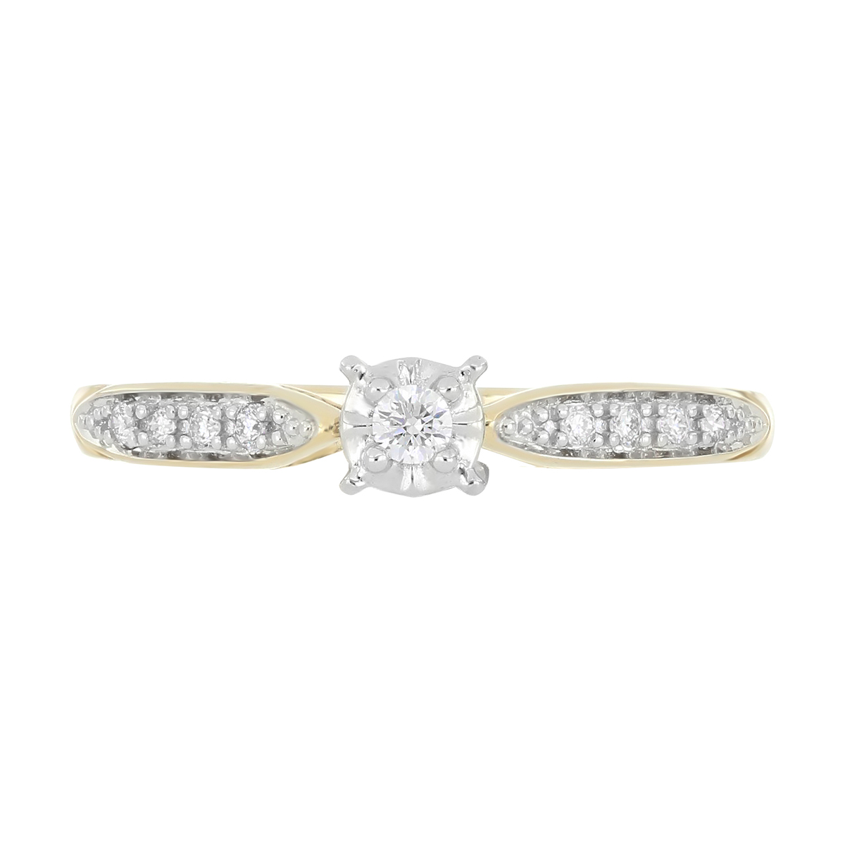 Anillo Solitario Ilusión con Montadura 0.15 Quilates de Diamante en Oro Amarillo de 14 kt