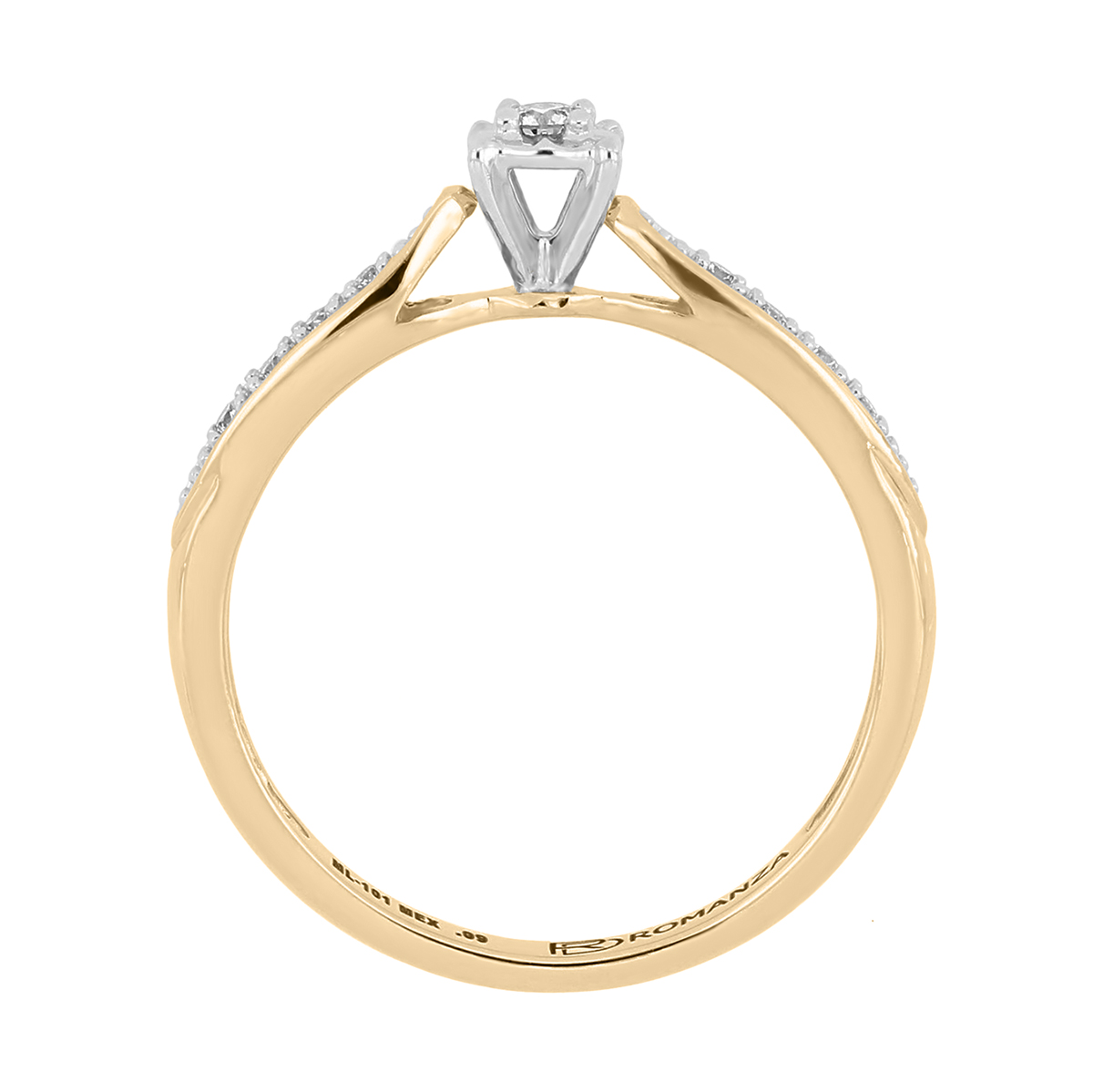 Anillo Solitario Ilusión con Centro 0.06 Quilates de Diamante en Oro Combinado de 14 kt