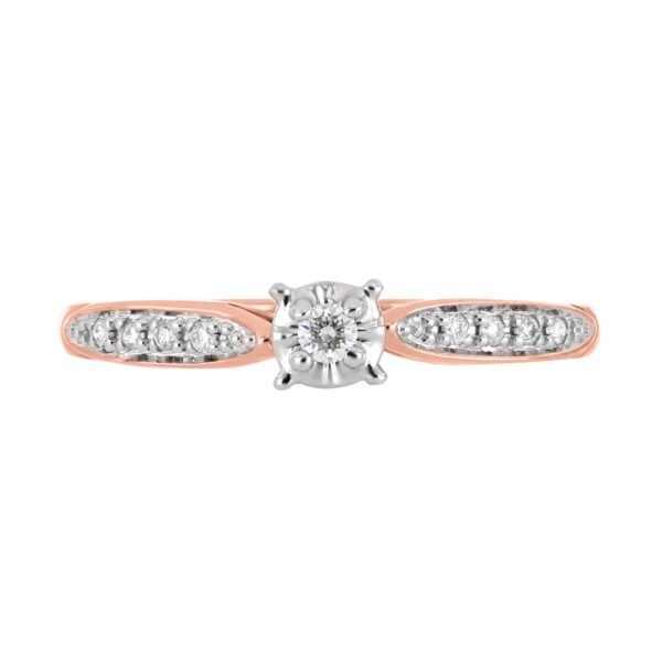 Anillo Solitario Ilusión con Montadura 0.15 Quilates de Diamante en Oro Rosa de 14 kt