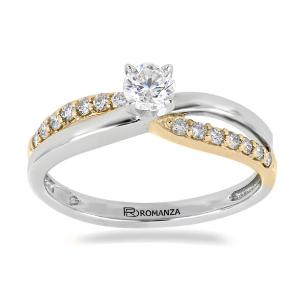 Anillo Solitario con Centro 0.25 Quilates y Montadura 0.20 Quilates de Diamante en Oro Combinado de 14 kt
