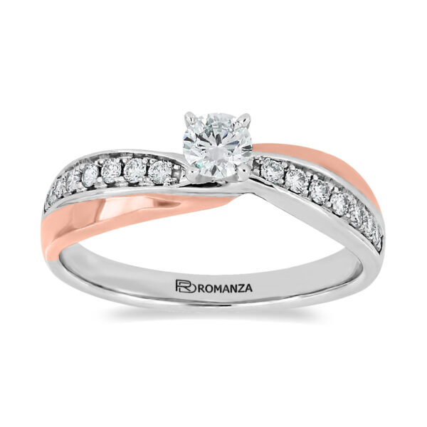 Anillo Solitario con Centro 0.25 Quilates y Montadura 0.17 Quilates de Diamante en Oro Combinado de 14 kt