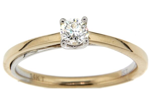 Anillo Solitario con Centro 0.25 Quilates de Diamante en Oro Combinado de 14 kt