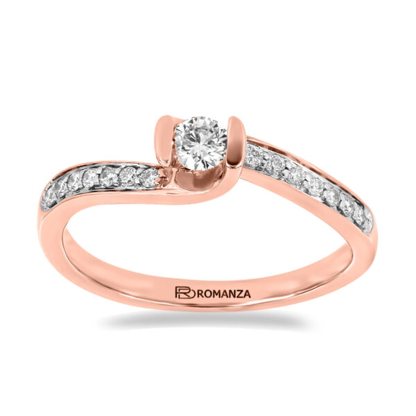 Anillo Solitario con Centro 0.17 Quilates y Montadura 0.12 Quilates de Diamante en Oro Rosa de 14 kt