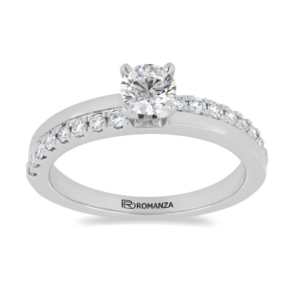 Anillo Solitario con Centro 0.45 Quilates y Montadura 0.25 Quilates de Diamante en Oro Blanco de 14 kt