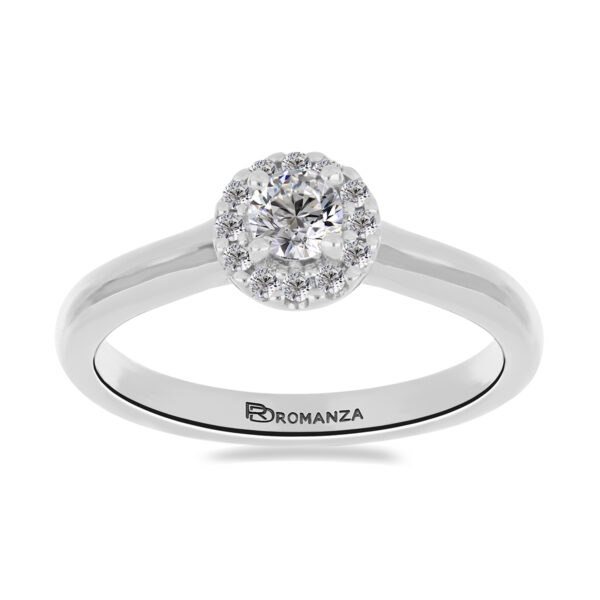 Anillo Solitario con Centro 0.17 Quilates y Montadura 0.05 Quilates de Diamante en Oro Blanco de 14 kt