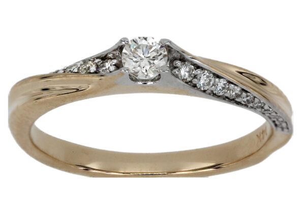 Anillo Solitario con Centro 0.12 Quilates y Montadura 0.14 Quilates de Diamante en Oro Amarillo de 14 kt