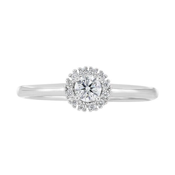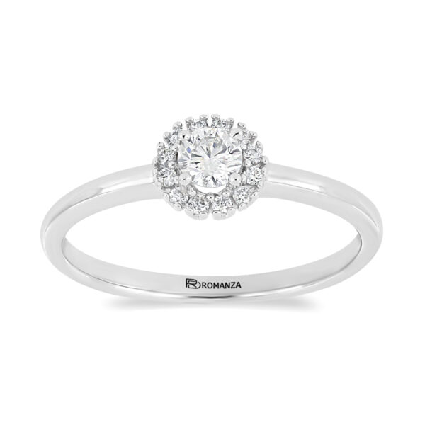 Anillo Solitario con Centro 0.20 Quilates y Montadura 0.08 Quilates de Diamante en Oro Blanco de 14 kt