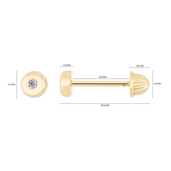 Aretes Bebé o Niña con Montadura 0.02 Quilates de Diamante en Oro Amarillo de 14 kt