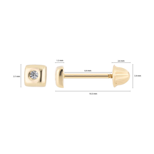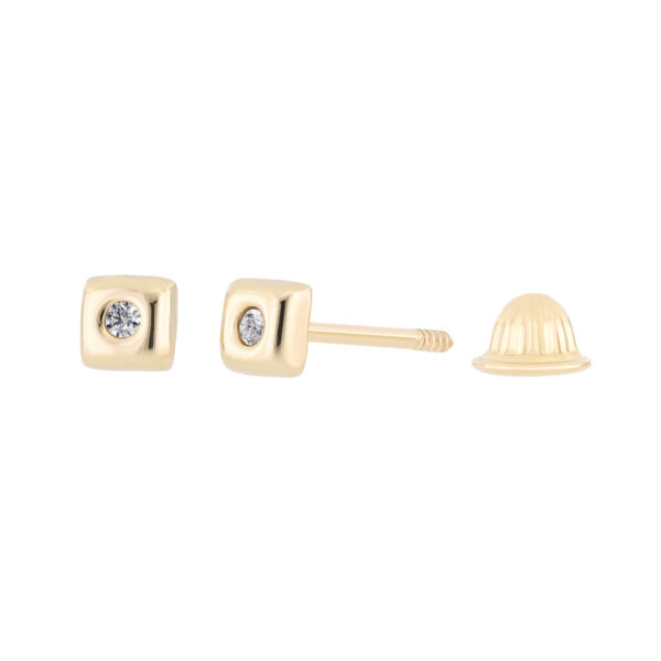 Aretes Bebé o Niña con Montadura 0.02 Quilates de Diamante en Oro Amarillo de 14 kt