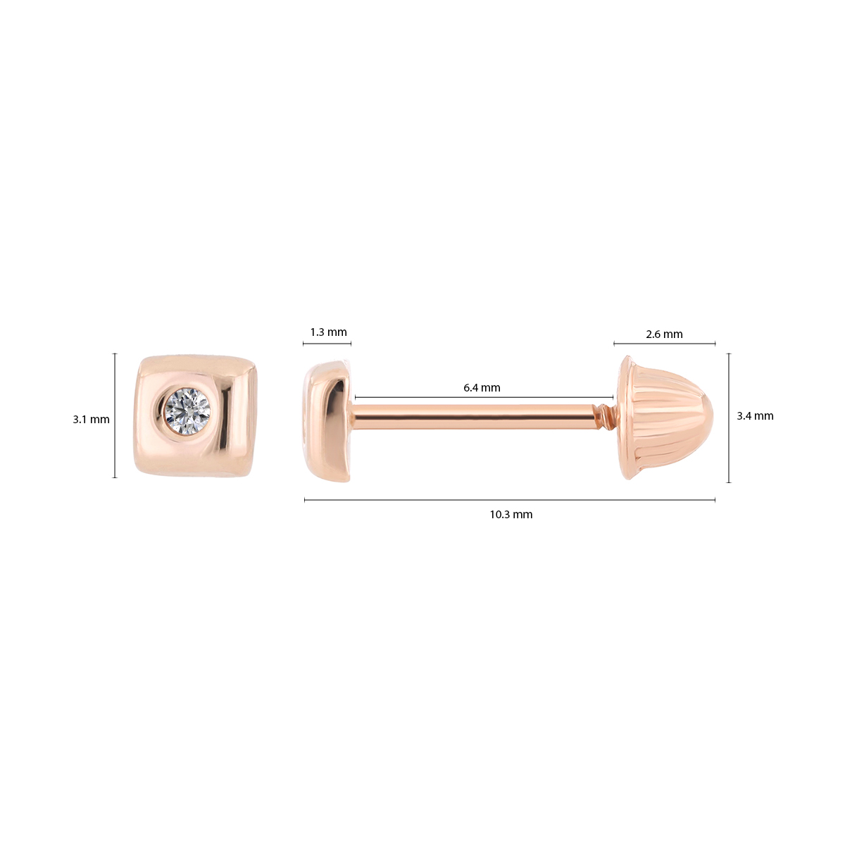 Aretes Bebé o Niña con Montadura 0.02 Quilates de Diamante en Oro Rosa de 14 kt