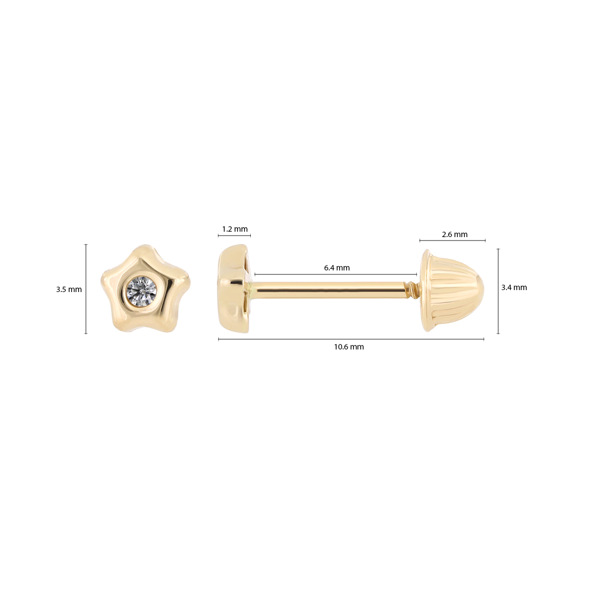 Aretes Bebé o Niña con Montadura 0.02 Quilates de Diamante en Oro Amarillo de 14 kt