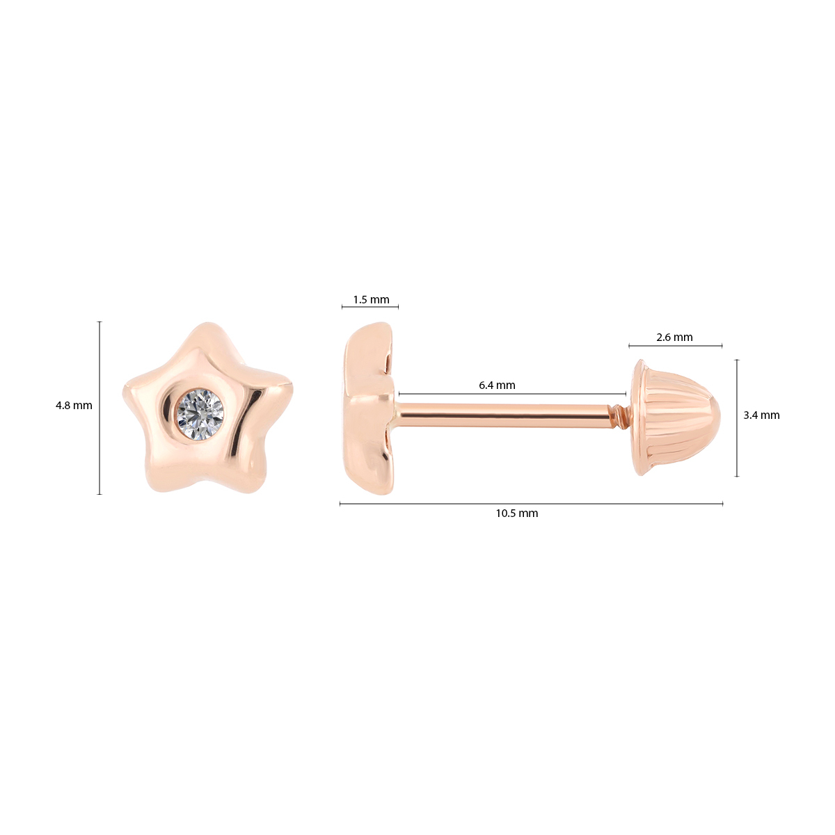 Aretes Bebé o Niña con Montadura 0.03 Quilates de Diamante en Oro Rosa de 14 kt