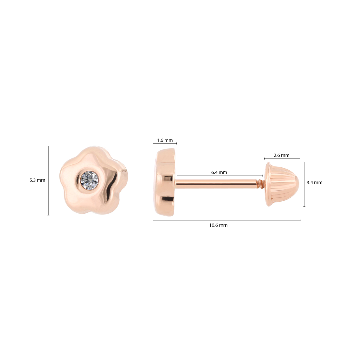 Aretes Bebé o Niña con Montadura 0.03 Quilates de Diamante en Oro Rosa de 14 kt