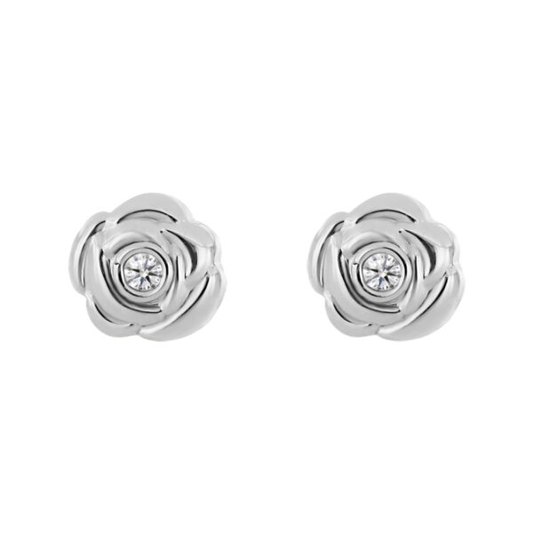 Aretes Bebé o Nña con Montadura 0.03 Quilates de Diamante en Oro Blanco de 14 kt