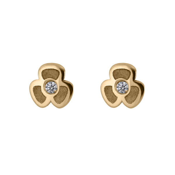 Aretes Bebé o Niña con Montadura 0.02 Quilates de Diamante en Oro Amarillo de 14 kt