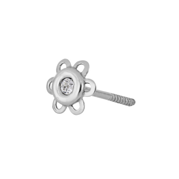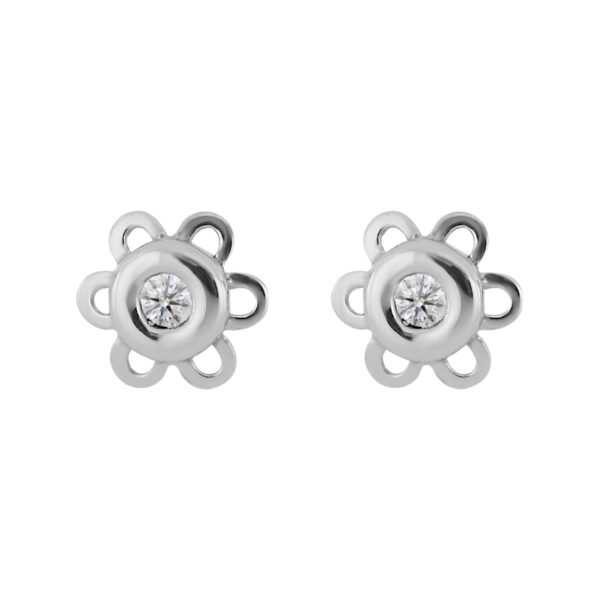 Aretes Bebé o Niña con Montadura 0.03 Quilates de Diamante en Oro Blanco de 14 kt