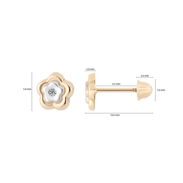 Aretes Bebé o Niña con Montadura 0.03 Quilates de Diamante en Oro Combinado de 14 kt