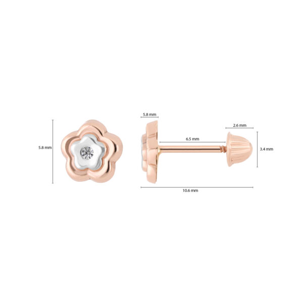 Aretes Bebé o Niña con Montadura 0.03 Quilates de Diamante en Oro Combinado de 14 kt