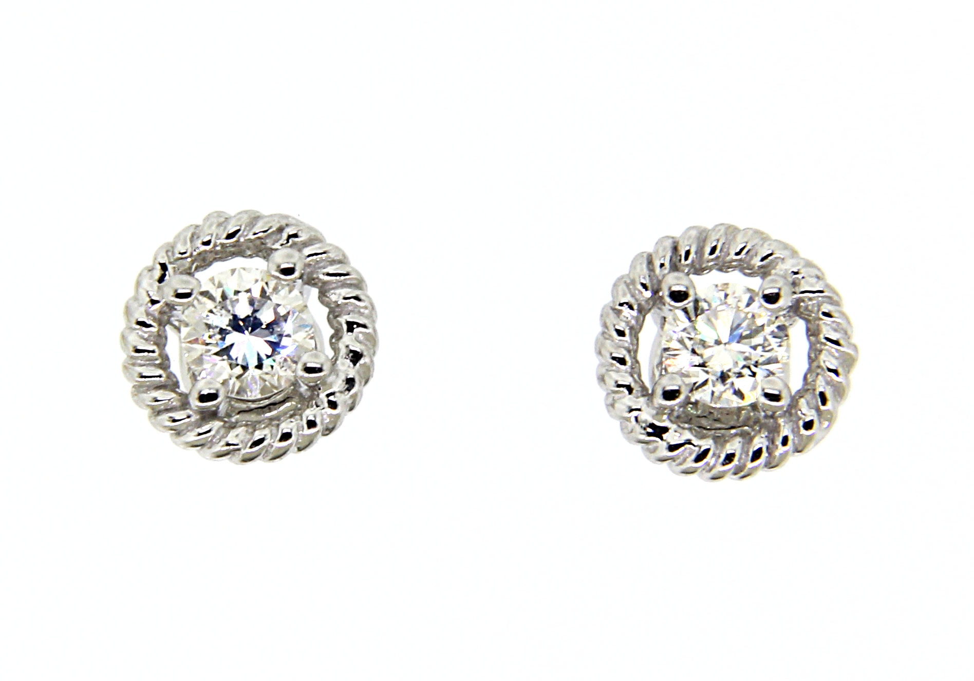 Broquel Dama con Centro 0.20 Quilates de Diamante en Oro Blanco de 14 kt