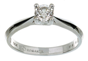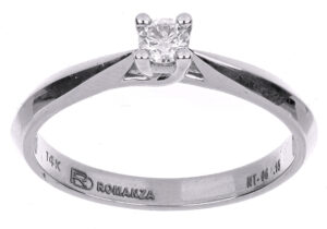Anillo Solitario con Centro 0.15 Quilates de Diamante en ORO BLANCO de 14 kt