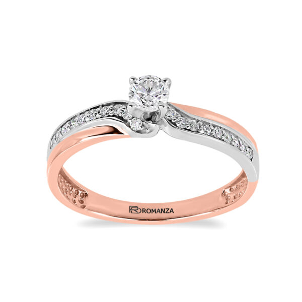 Anillo Solitario con Centro 0.20 Quilates y Montadura 0.14 Quilates de Diamante en Oro Combinado de 14 kt