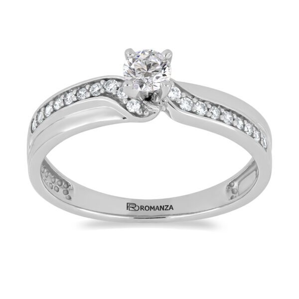 Anillo Solitario con Centro 0.20 Quilates y Montadura 0.12 Quilates de Diamante en ORO BLANCO de 14 kt