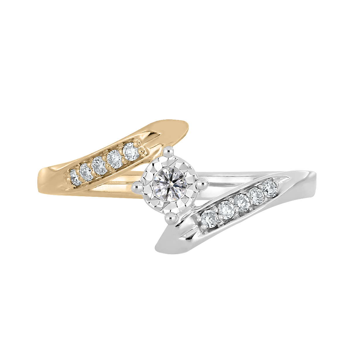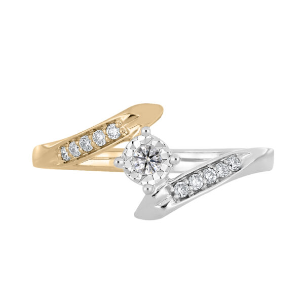 Anillo Solitario Ilusión con Montadura 0.12 Quilates de Diamante en Oro Combinado de 14 kt