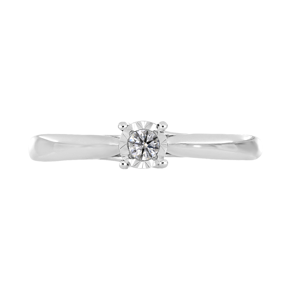 Anillo Solitario Ilusión con Centro 0.06 Quilates de Diamante en Oro Blanco de 14 kt