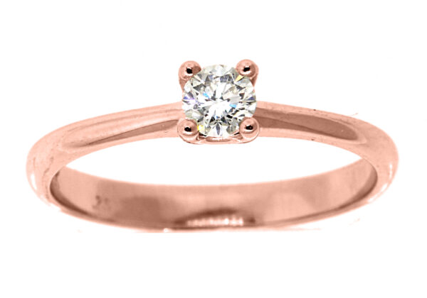 Anillo Solitario con Centro 0.25 Quilates de Diamante en Oro Rosa de 14 kt