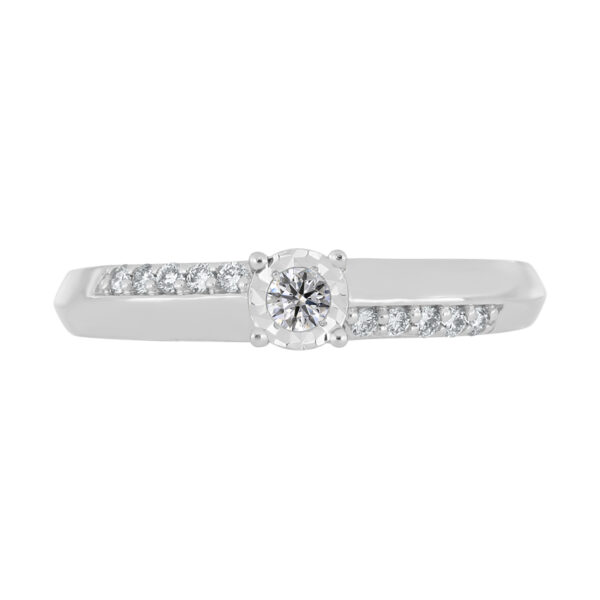 Anillo Solitario Ilusión con Montadura 0.15 Quilates de Diamante en Oro Blanco de 14 kt
