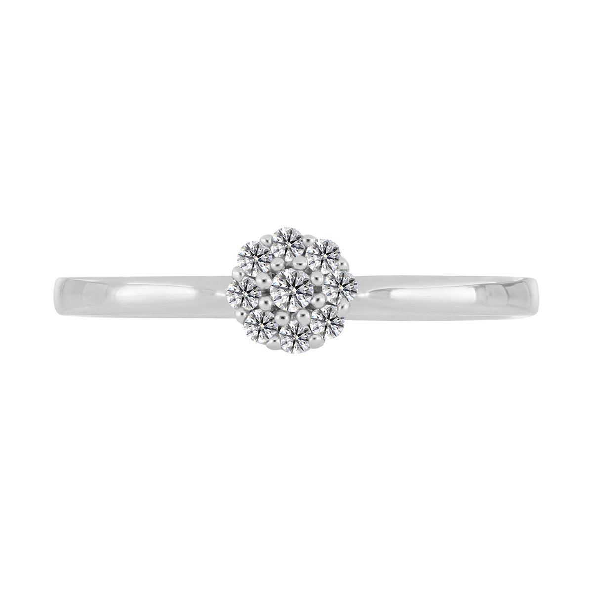 Anillo Solitario Roseta con Montadura 0.10 Quilates de Diamante en Oro Blanco de 14 kt