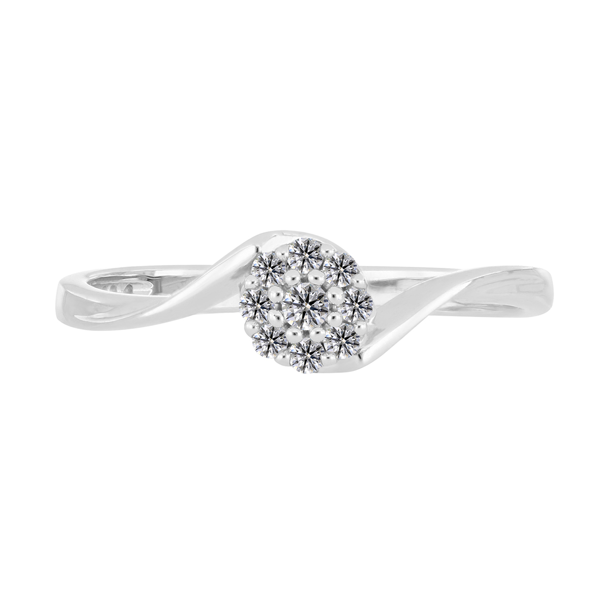 Anillo Solitario Roseta con Montadura 0.10 Quilates de Diamante en Oro Blanco de 14 kt