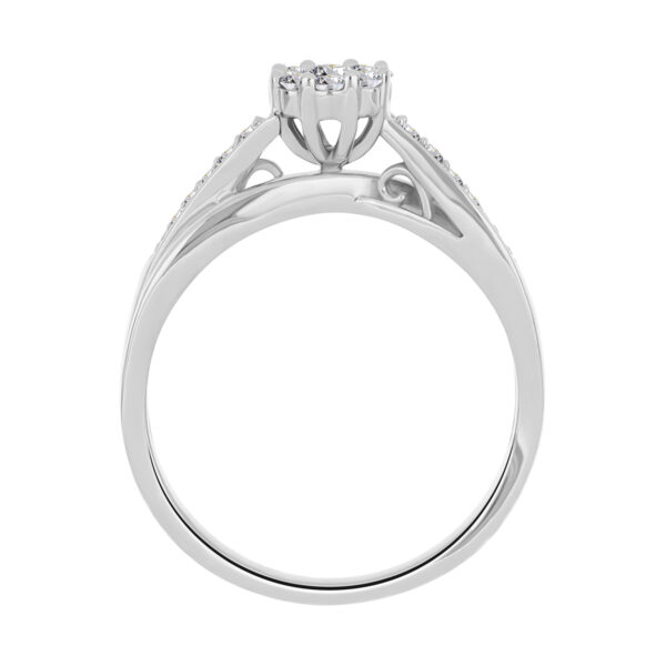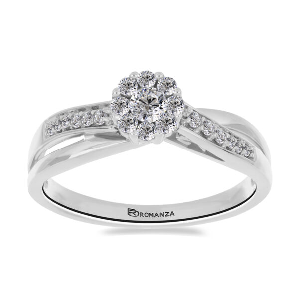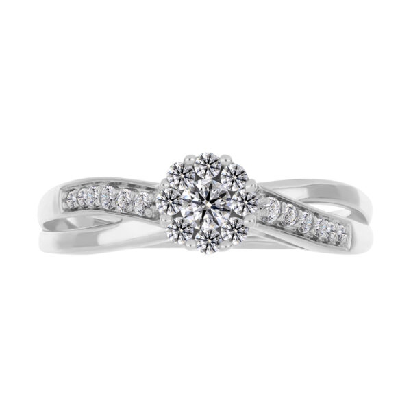 Anillo Solitario Roseta con Montadura 0.19 Quilates de Diamante en ORO BLANCO de 14 kt